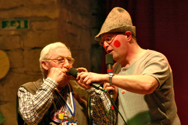 Bereits bei der ersten Prunksitzung und viele weitere Jahre, auch im hohen Alter, als Akteur mit Herz und Seele dabei - unser Junge mit der Mundharmonika.