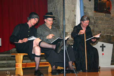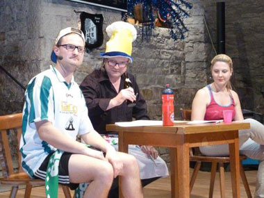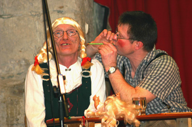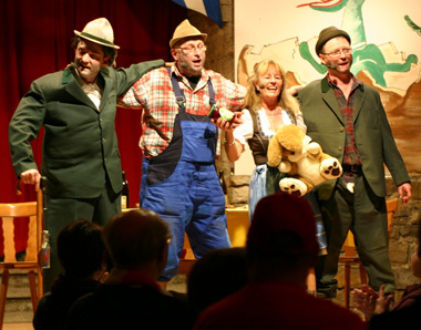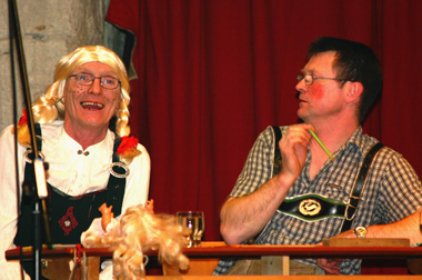 - Helmut Hoffmann, Michael Reisenwedel und Christopher Hoffmann, der nahtlos in die Fußstapfen seines Onkels Reinhold Hoffman trat, heizen ihrem Publikum mit Gesangseinlagen, deftigen Worten und Lokalkolorit zum Schluß immer noch mal so richtig ein.